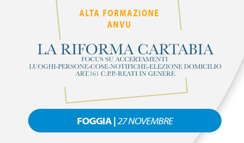 Focus su accertamenti Luoghi-Persone-Cose-Notifiche-Elezione Domicilio art.161 c.p.p.-reati in genere Foggia | 27 Novembre 2025 Programma 08:30 Accreditamento 09:00 Saluti IstituzionaliGaetano Barione| Segretario Nazionale ANVUMaria Aida…