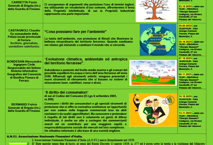 A.N.F.I. Associazione Nazionale Finanzieri d’Italia E’ una progettualità proposta dalla Associazione Nazionale dei Finanzieri d’Italia – Sezione di Ferrara, che consiste in conferenze attinenti argomenti…